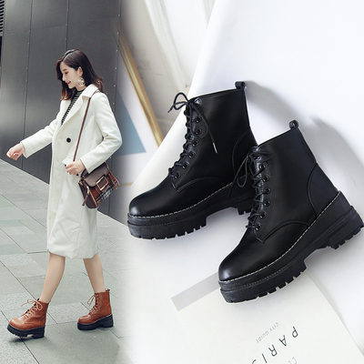 Mùa đông 2018 mới dày đế dày giày cotton ấm đôi giày ngắn Martin ủng nữ màu da sáng sinh viên màu đỏ lưới chelsea boot nữ