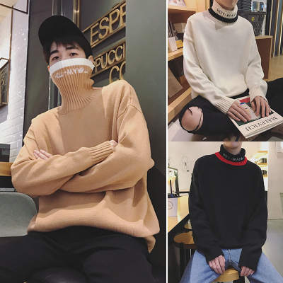 Mùa đông 2018 mới nhỏ bến cảng gió nam thêu áo len cao cổ dày áo len rộng ấm áp áo len cổ cao nam Áo len cổ tròn