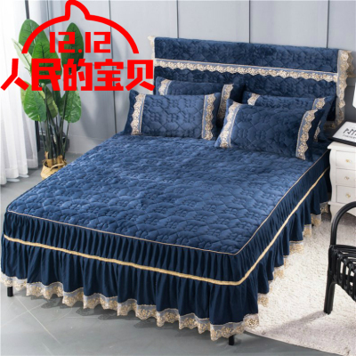 Mùa đông ấm pha lê nhung chăn bông váy đơn mảnh trải giường bảo vệ 1,5m 1,8 m dày váy nhung Pháp drap giường có viền