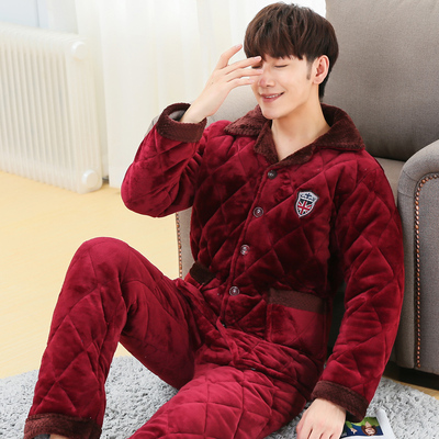 Mùa đông dày nam san hô nhung nhung đồ ngủ quần áo nam cộng với phân bón XL người đàn ông béo 300 pounds nam thêm kích thước lớn 5 bộ khủng long Nam giới