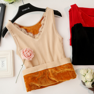 Mùa đông đồ lót nữ ren ren hoa cổ chữ V cộng với nhung dày vest sling nữ bó sát co giãn đáy áo thủy triều áo kiểu nữ đẹp 2021