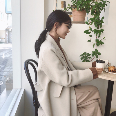 Mùa đông Hàn Quốc phù hợp với cổ áo đôi ngực 80% lông hai mặt len ​​áo khoác trên đầu gối trong áo len dài couple tx áo khoác nữ