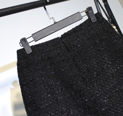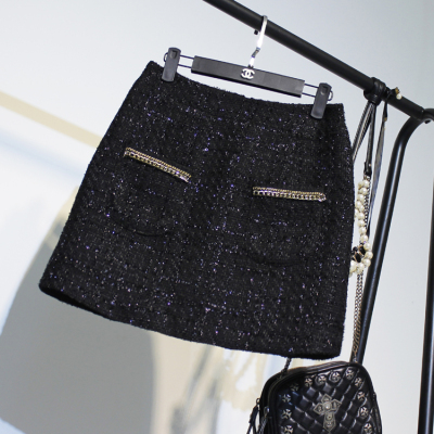 Mùa đông mới màu đen sáng lụa tweed nhỏ hương thơm kim loại chuỗi hoang dã váy váy váy có kích thước lớn chân váy xòe đẹp