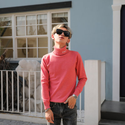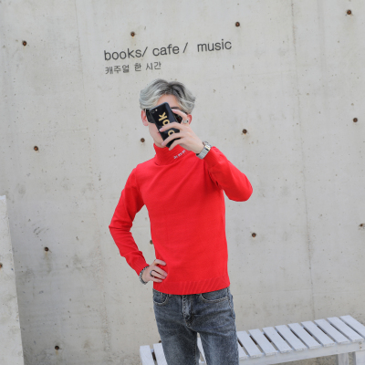 Mùa đông mới trắng áo len cao cổ nam phiên bản Hàn Quốc của cổ áo mỏng chữ thêu áo len cotton đáy áo áo len nam cổ lọ