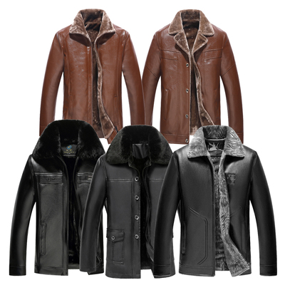 Mùa đông mới trung niên da nam cộng với nhung dày cỡ lớn áo sơ mi nam cha mặc áo khoác da giản dị quần áo nam Áo khoác nam cao cấp Quần áo lông thú