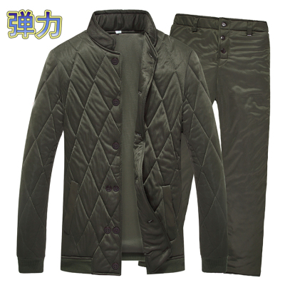 Mùa đông nam cotton phù hợp với quân đội bông xanh bộ đồ lót ấm quần đứng cổ bông quần bên ngoài mặc dụng cụ quần thường - Bông măng tô nam Bông