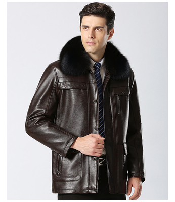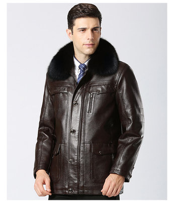 Mùa đông trung niên nam da nam áo khoác da nam trung niên cộng với phân bón áo khoác da XL cộng với nhung dày áo khoác bomber Quần áo lông thú