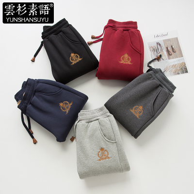 Mùa đông và mùa đông quần thể thao nam cộng với quần nhung dệt kim rộng dày dày cỡ lớn quần ấm cho nam áo quần giữ nhiệt