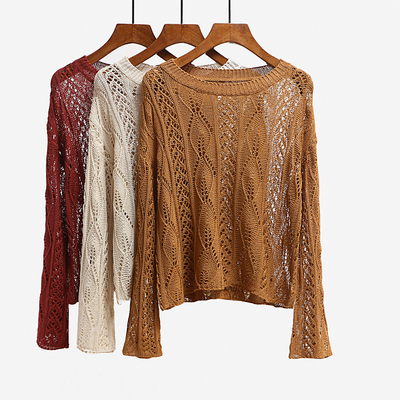 Mùa hè 2018 áo len mới của phụ nữ phần mỏng lỏng áo dài tay chống nắng áo sơ mi tay kèn hoang dã áo cardigan