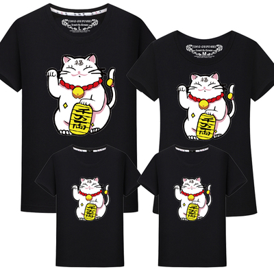 Mùa hè 2018 gia đình mới trang bị áo thun ngắn tay màu đỏ một gia đình gồm ba hoặc bốn chiếc áo thun may mắn mèo mèo cha mẹ áo đồng phục gia đình đi biển