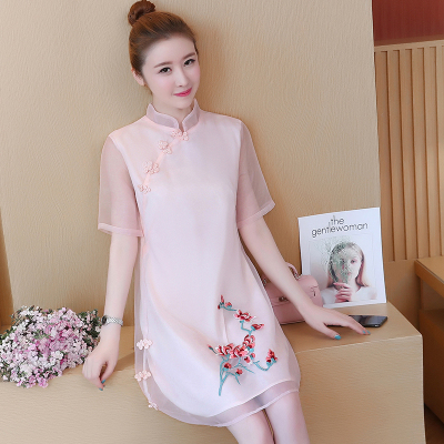 Mùa hè 2018 mới phong cách retro quốc gia phụ nữ thêu hoa lỏng một chiếc váy cô gái cải tiến váy sườn xám đầm chữ a đẹp