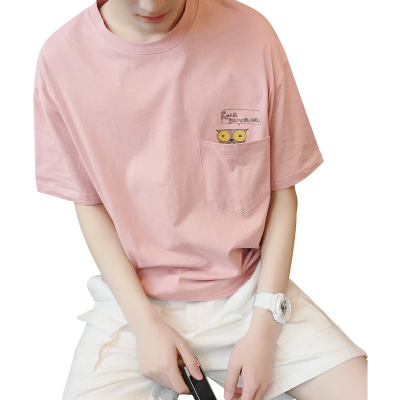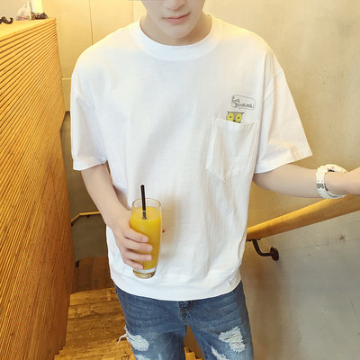 Mùa hè 2019 cổ tròn tay áo ngắn tay nam giản dị nửa tay áo Hàn Quốc đôi rắn màu áo sơ mi nam chất béo - Áo phông ngắn áo thun polo nam Áo phông ngắn