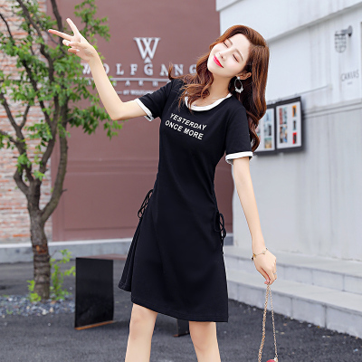 Mùa hè 2019 mới của phụ nữ thời trang nước ngoài lỏng lẻo áo thun dài đoạn một từ eo váy ngắn tay thủy triều - A-Line Váy đầm xòe