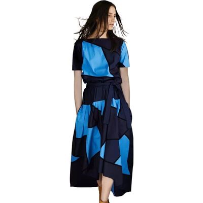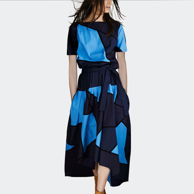 Mùa hè 2019 tay ngắn khâu màu tương phản phổ biến phụ nữ mới khí chất Pháp nhỏ Một chiếc váy chữ - A-Line Váy váy xòe hoa nhí