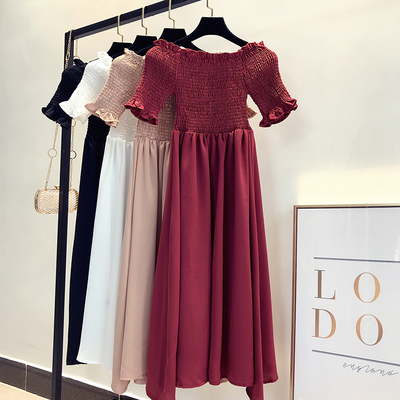 Mùa hè ăn mặc cổ áo quây xếp li đầm voan cao eo tai gỗ mỏng đáy tính khí váy dài mùa xuân váy váy ôm eo xòe