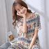 Mùa hè bông lụa đồ ngủ nữ gió quốc gia tua ngắn tay áo quần rộng chân quần nhân tạo bông đồ ngủ thiết lập có thể được đeo quần áo ngủ Giống cái