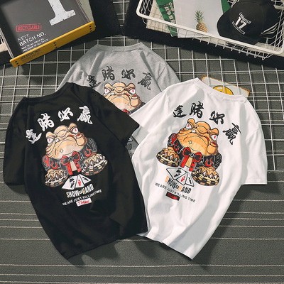 Mùa hè châu Âu và Hoa Kỳ cờ bạc đường phố sẽ giành chiến thắng cotton ngắn tay xu hướng hip-hop thả lỏng cổ tròn áo thun sinh viên tee ngắn áo oversize nam