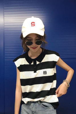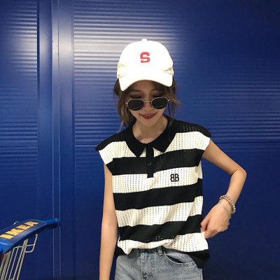 Mùa hè của phụ nữ 2018 mới của Hàn Quốc phiên bản của retro thêu polo cổ áo áo len lỏng mỏng không tay vest sinh viên áo thun