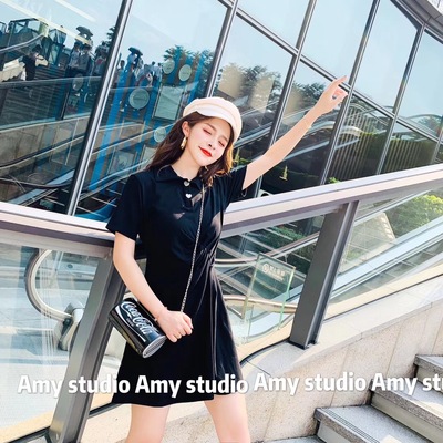 Mùa hè của phụ nữ mới màu rắn đơn giản ngắn tay áo polo váy xếp li eo túi hip một từ váy siêu cổ tích - A-Line Váy váy chữ a đẹp