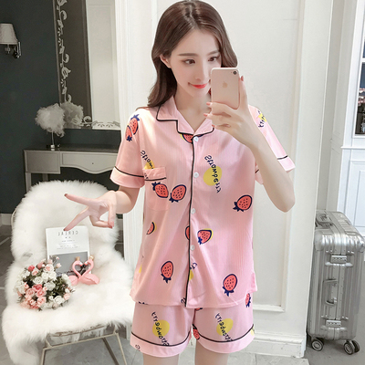 Mùa hè đồ ngủ của phụ nữ cotton ngắn tay cardigan phần mỏng Hàn Quốc phiên bản của ngọt ngào và đáng yêu ladies cotton mùa hè phục vụ nhà phù hợp với đồ pijama nữ Giống cái