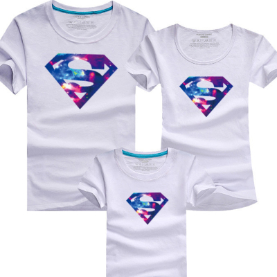 Mùa hè hè cotton Gia đình thời trang Hàn Quốc trang bị cho ba gia đình áo thun ngắn tay dài toàn thân Top Superman Star Superman quần áo trẻ em