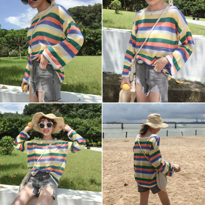 Mùa hè hoang dã sọc kem chống nắng quần áo nữ lỏng dài tay áo len mỏng đan triều sinh viên Hàn Quốc T-Shirt là áo sơ mi mỏng áo nữ