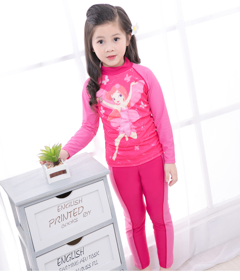 Mùa hè mới cho trẻ em áo chống nắng quần bơi nữ dài tay quần áo nhanh khô đồ bơi bé gái spa áo tắm chia nữ - Bộ đồ bơi của Kid áo tắm trẻ con