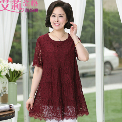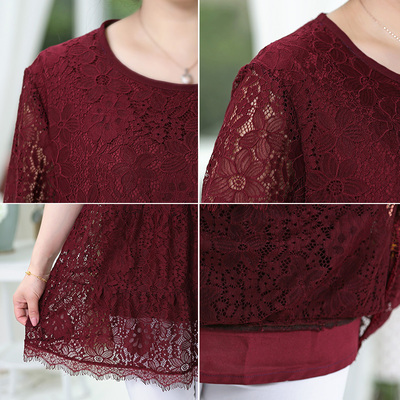 Mùa hè mới cỡ lớn 200 cân ren mẹ béo trung niên cộng với phân bón tăng váy dài tay cho phụ nữ - Cộng với kích thước quần áo đồ vest nữ Cộng với kích thước quần áo
