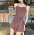 Mùa hè mới của Hàn Quốc phiên bản của chic gió Slim quây ngọt không thường xuyên bow dây đeo màu rắn ăn mặc quần phụ nữ 	váy hạ eo xếp ly