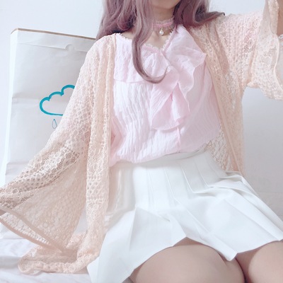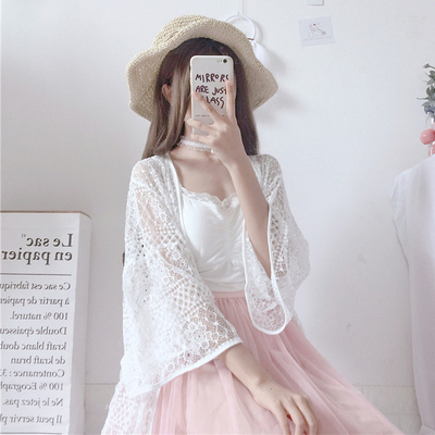 Mùa hè mới của phụ nữ Nhật Bản ngọt ngào ren bảy điểm tay áo voan áo sơ mi hoang dã mỏng điều hòa không khí cardigan kem chống nắng quần áo triều mẫu áo sơ mi đẹp