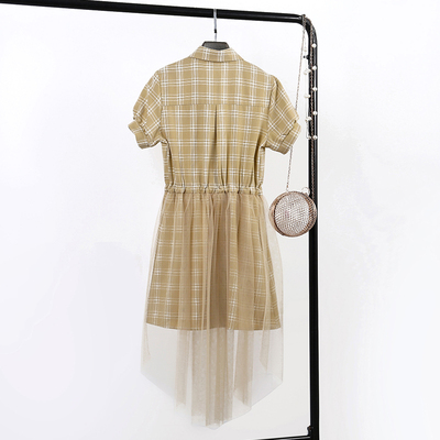 Mùa hè mới kẻ sọc đầm lưới nữ khâu tay áo ngắn váy dài LE8C435 đầm maxi đi biển Váy dài