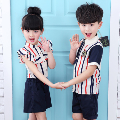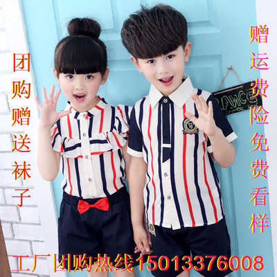 Mùa hè mới nam giới và phụ nữ trẻ em sọc đồng phục học sinh đặt England gió mẫu giáo quần áo tùy chỉnh đồng phục học sinh tiểu học