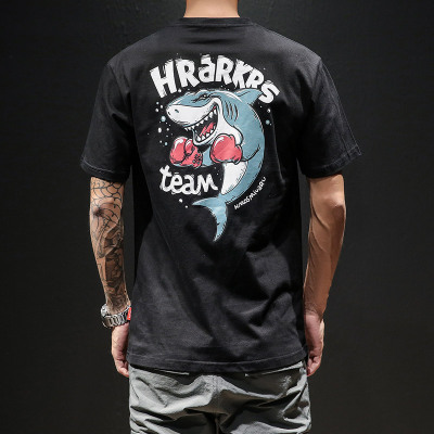 Mùa hè mới phim hoạt hình cá mập boxer in ngắn tay nam T-Shirt thanh niên thể dục thể thao áo sơ mi xu hướng TEE áo thể thao nữ ba lỗ