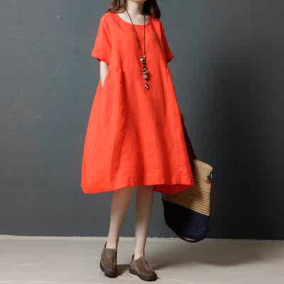 Mùa hè mới văn học retro của phụ nữ eo cao là mỏng kích thước lớn váy lanh giản dị một chiếc váy từ - A-Line Váy đầm ngắn xòe