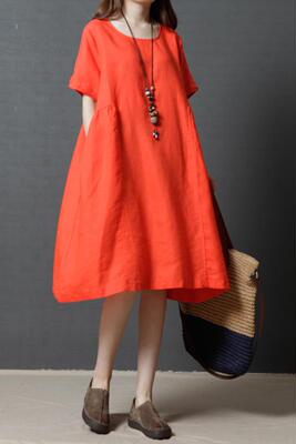 Mùa hè mới văn học retro của phụ nữ eo cao là mỏng kích thước lớn váy lanh giản dị một chiếc váy từ - A-Line Váy đầm ngắn xòe A-Line Váy