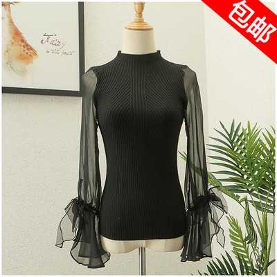 Mùa hè mỏng cao đàn hồi voan khâu trumpet tay áo màu áo thun áo len nữ 29702 áo len cổ lọ