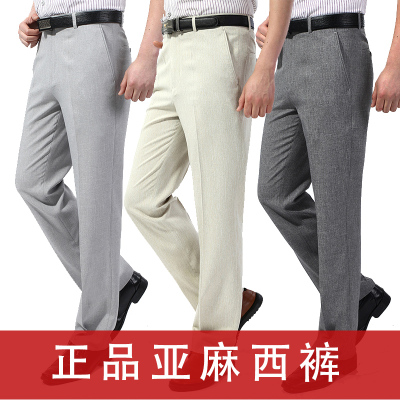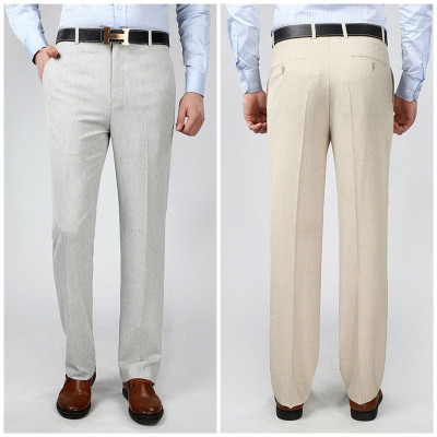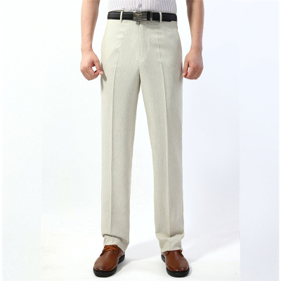 Mùa hè mỏng phần trung niên nam lanh lanh phù hợp với quần cao eo cao miễn phí ủi quần nam mùa hè ánh sáng dâu tằm - Suit phù hợp quan tay nam