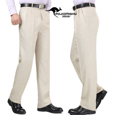 Mùa hè mỏng phần trung niên quần lanh nam trung niên quần xếp li đôi trung tính thẳng qua quần màu be lỏng - Suit phù hợp quan au Suit phù hợp