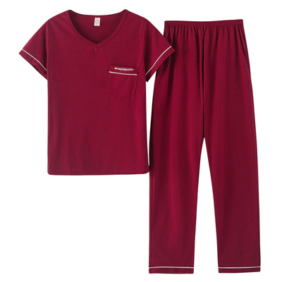 Mùa hè mỏng phần vài bộ đồ ngủ quần ngắn tay cotton cưới năm mới màu đỏ đám cưới nam và nữ dịch vụ nhà phù hợp đồ mặc nhà cao cấp