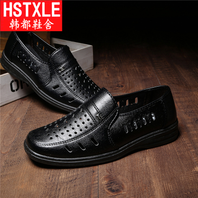 Mùa hè nam công sở bình thường bộ chân có lỗ rỗng lưới làm việc giày da mát mẻ nam làm việc lỗ lưới dép dép rọ gucci Sandal