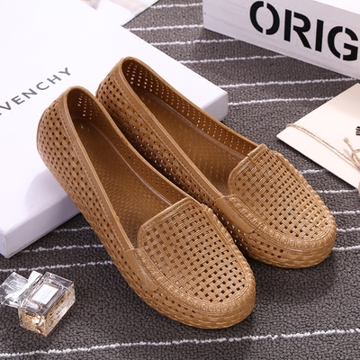 Mùa hè nông miệng bằng phẳng dép nhựa nữ y tá làm việc giày Baotou đậu Hà Lan chim yến lỗ rỗng dép havaianas đính đá Sandal