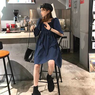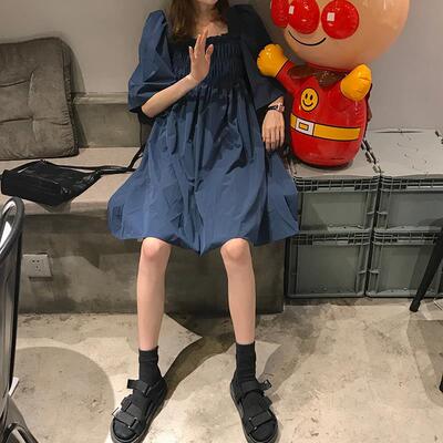 Mùa hè phiên bản Hàn Quốc 2019 mới Pháp retro eo cao giảm béo bên vuông tay áo năm điểm Một trang phục từ quần áo phụ nữ - A-Line Váy váy chữ a dài liền thân A-Line Váy