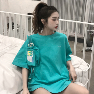 Mùa hè phiên bản Hàn Quốc in lưới đỏ Hồng Kông hương lỏng màu xanh lá cây hoang dã cổ tròn tay áo ngắn tay áo nửa tay nữ sinh viên áo thủy triều - Áo phông mẫu áo thun nữ đẹp 2020