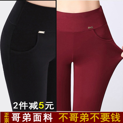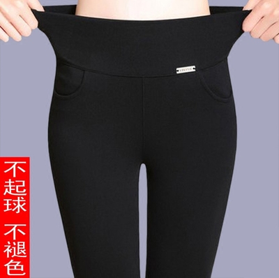 Mùa hè quần cộng với giảm béo xà cạp chín điểm bên ngoài mặc đàn hồi cao eo chất béo mẹ kích thước lớn nữ chân quần chất béo mm phần mỏng quần ôm đen Quần tây thường