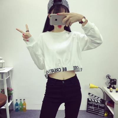 Mùa hè sinh viên mới cao eo rốn áo sơ mi Harajuku áo len nữ hem letter in dài tay áo ngắn áo len thủy triều váy đầm đẹp
