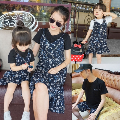 Mùa hè thân thiện với gia đình Áo thun gia đình ba nhà gia đình đi biển bên bờ biển váy đầm mẹ và con áo gia đình đẹp Trang phục dành cho cha mẹ và con