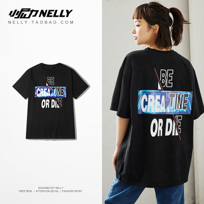 Mùa hè thương hiệu thủy triều châu Âu và Mỹ hip hop tay áo ngắn nam và nữ đôi thủy triều lỏng lẻo in áo oversize nửa tay áo trắng áo thun thể thao nam Áo phông ngắn