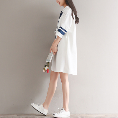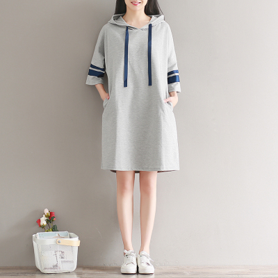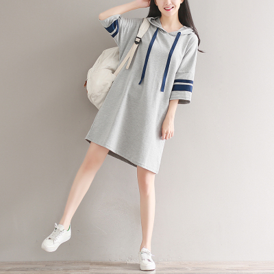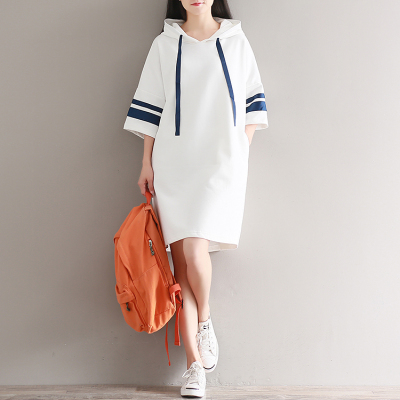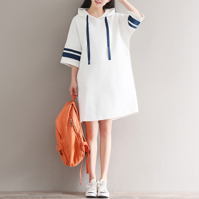 Mùa hè văn học nhỏ tươi giản dị tương phản màu lỏng sọc tay áo trùm đầu áo len của phụ nữ áo dài t-shirt triều đồ nữ đẹp