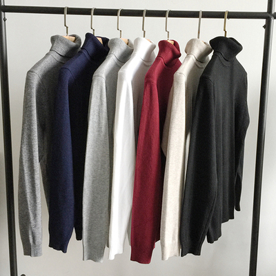 Mùa thu 2018 giản dị màu rắn phần mỏng áo len cổ cao nam tự canh kéo căng học sinh hoang dã đan áo len thủy triều áo khoác nam thu đông Hàng dệt kim