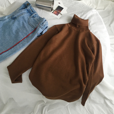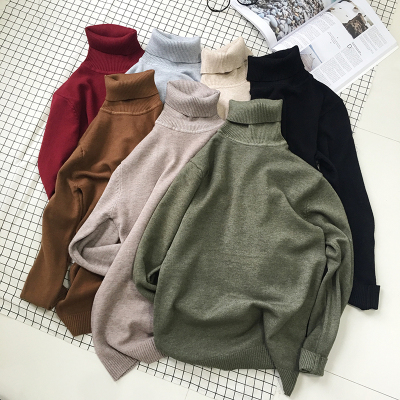 Mùa thu 2018 giản dị màu rắn phần mỏng áo len cổ cao nam tự canh kéo căng học sinh hoang dã đan áo len thủy triều áo khoác nam thu đông